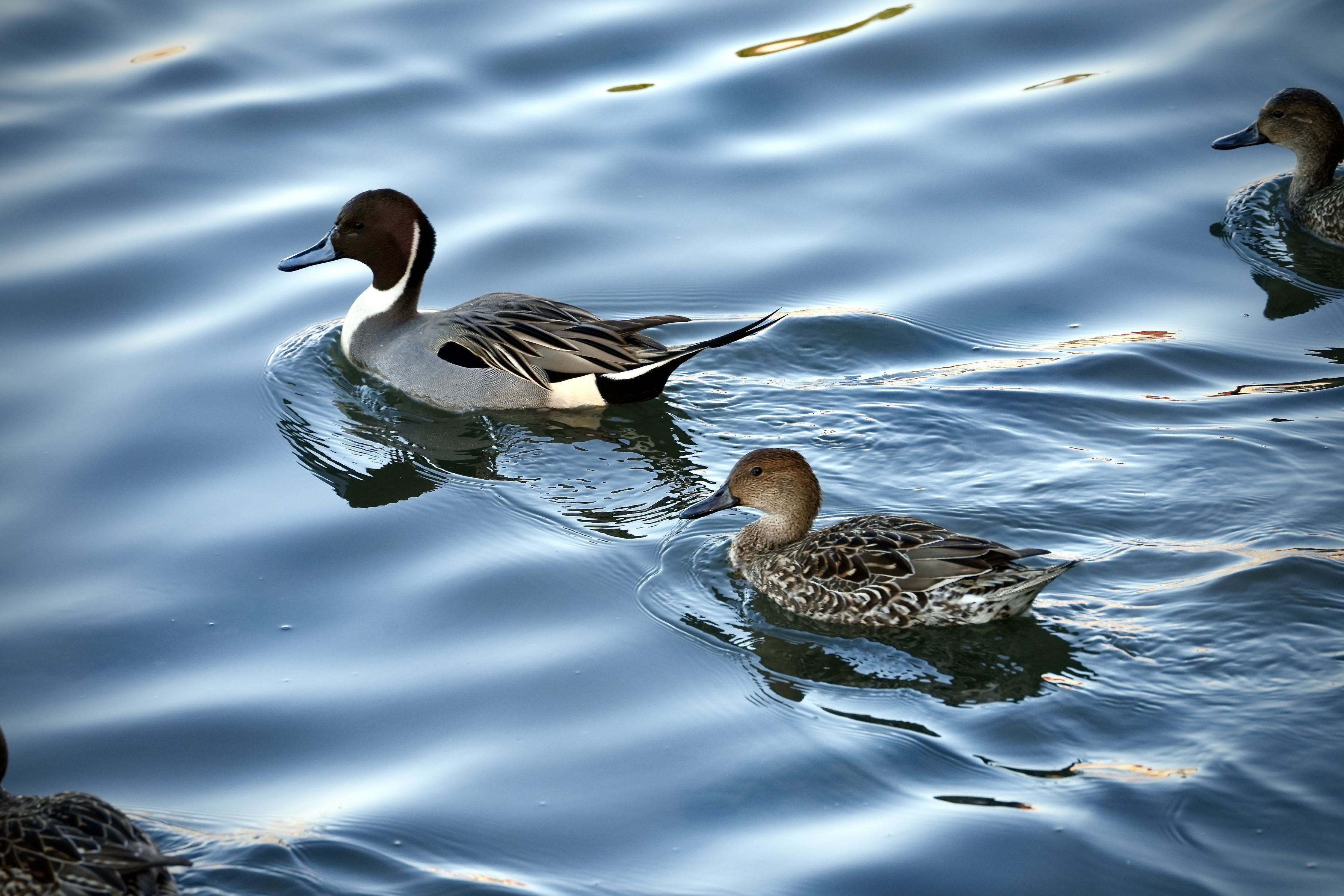 朝の海のオナガカモ。名古屋市藤前干潟