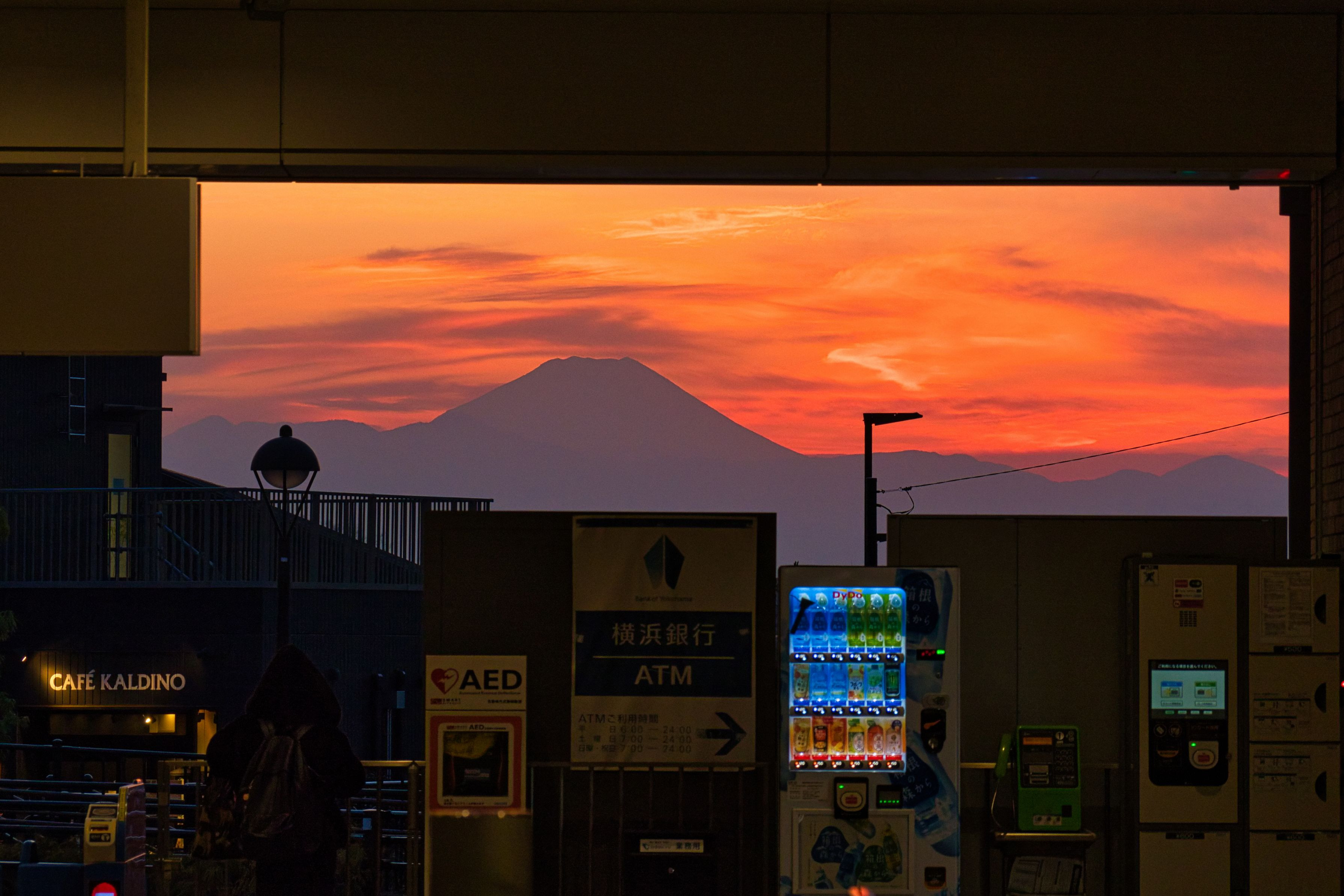 世田谷代田駅の改札を入り、振り返ると 日没後の夕焼け空と富士山が綺麗でした。 ドラマ「silent」で有名になりました。 #東京都#