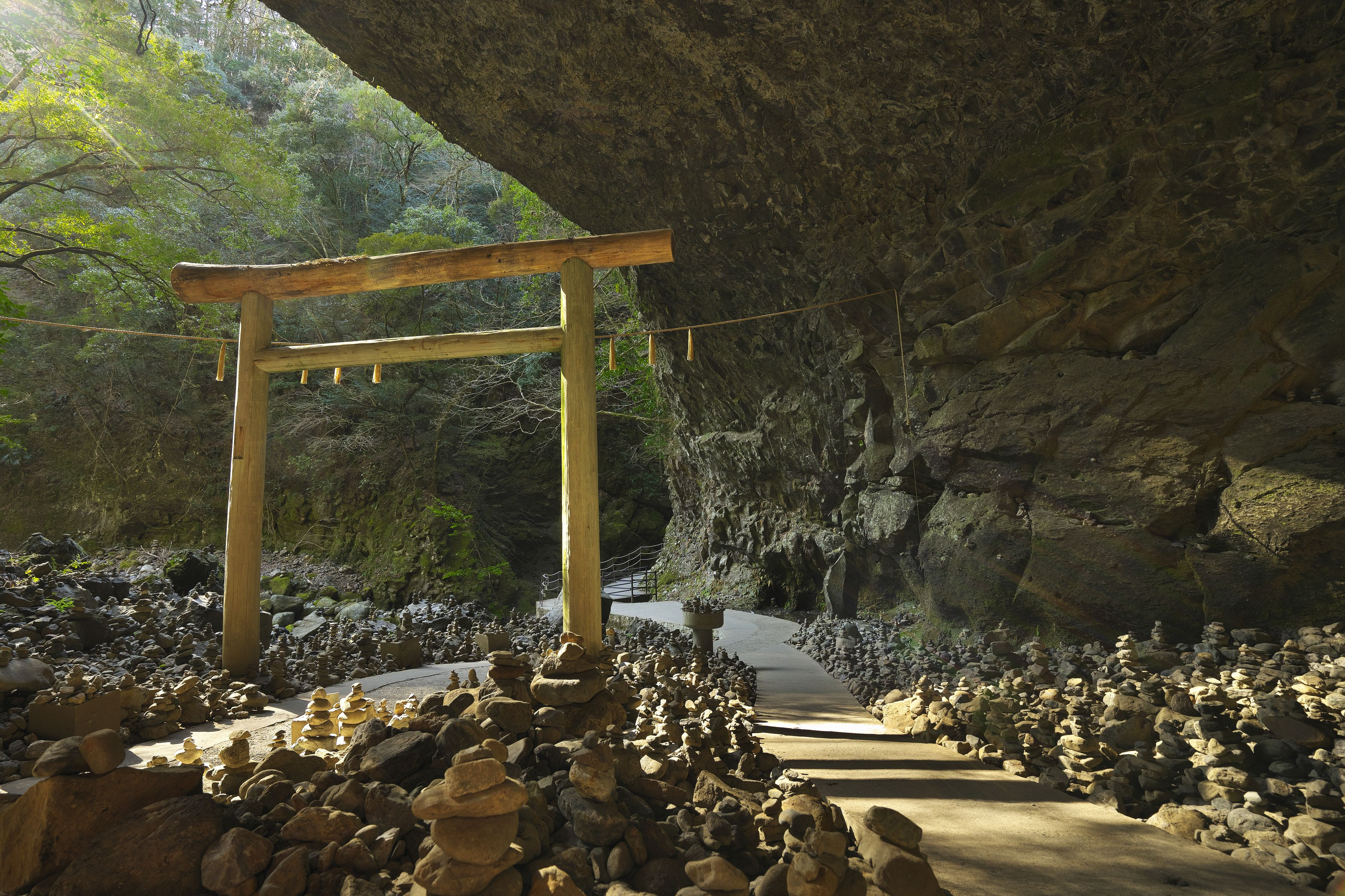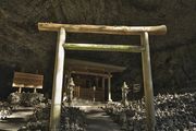 高千穂町 天照大神が岩戸に隠れたさい、天地暗黒となり八百万の神がこの河原に集まり神議したと伝えられる大洞窟に立つ宮。
