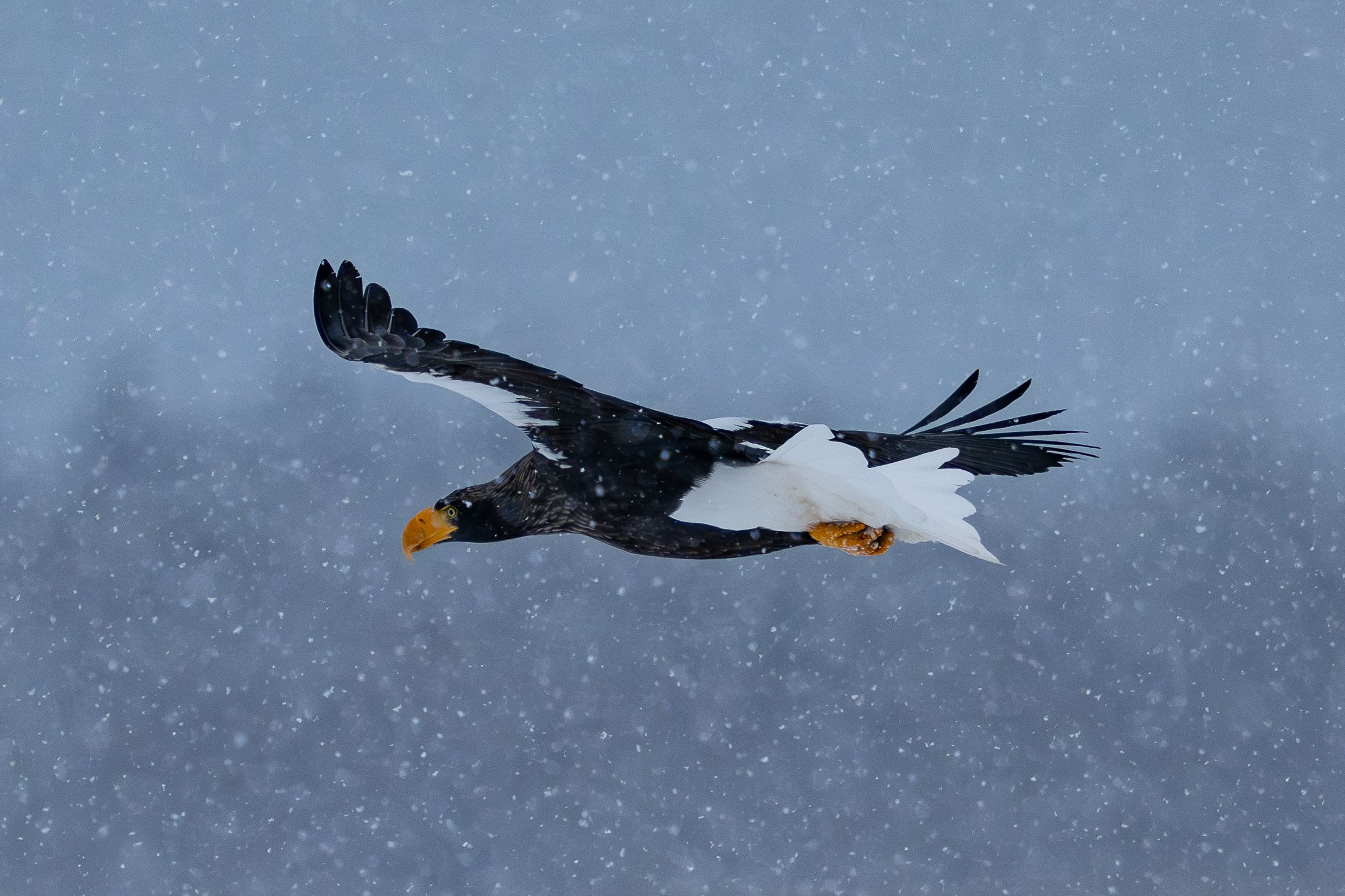 根室風連湖のオオワシ。朝は雪でした。
