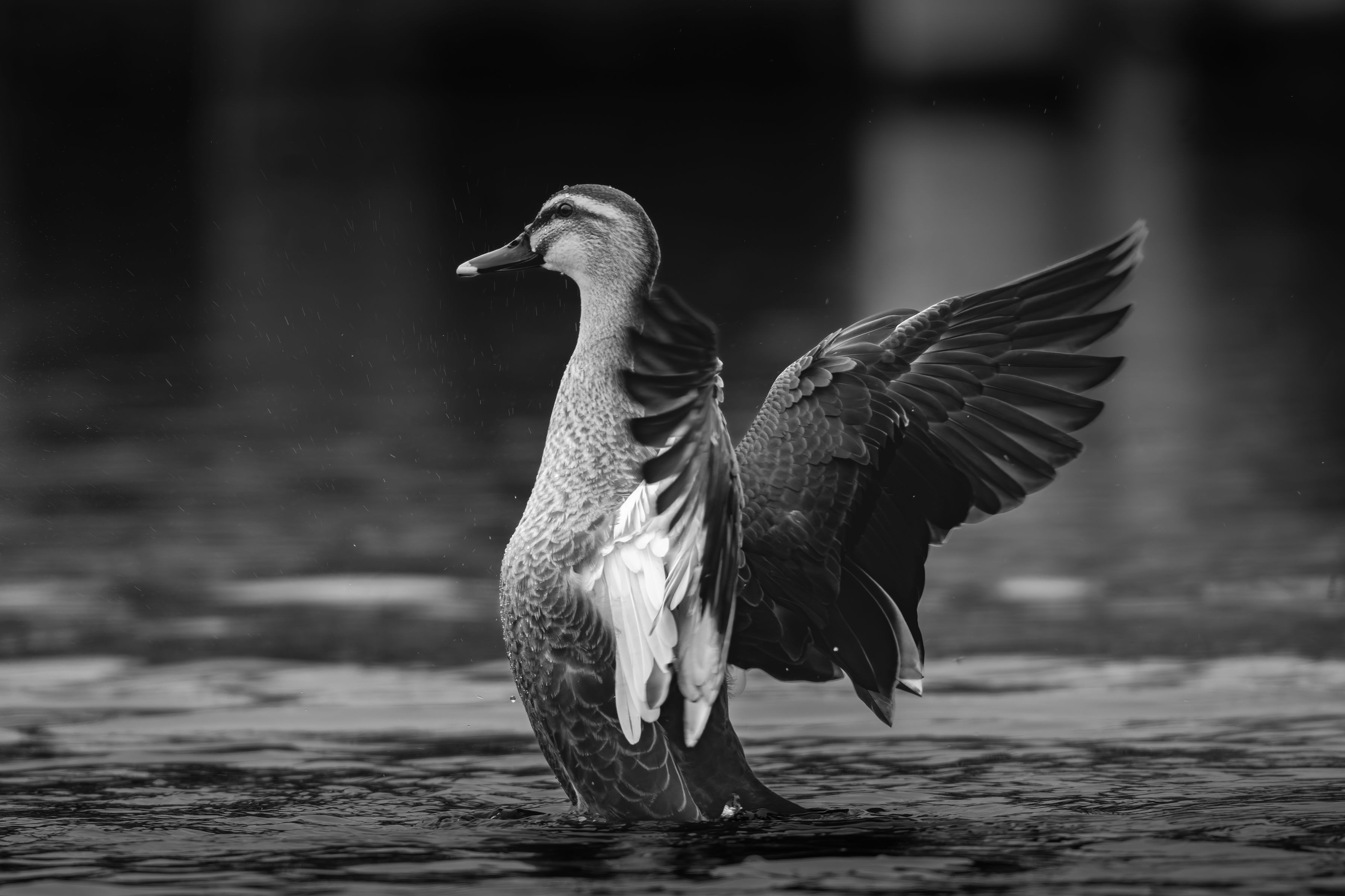 本日届いたニューレンズ「FE 400-800mm F6.3-8 G OSS」の初ショットです。 公園の池で羽を休める鴨。ふとした瞬間に見せた力強い羽ばたきを、モノクロームで切り取りました。 超望遠ならではの解像感と、静寂の中に響く羽音を感じていただければ幸いです。