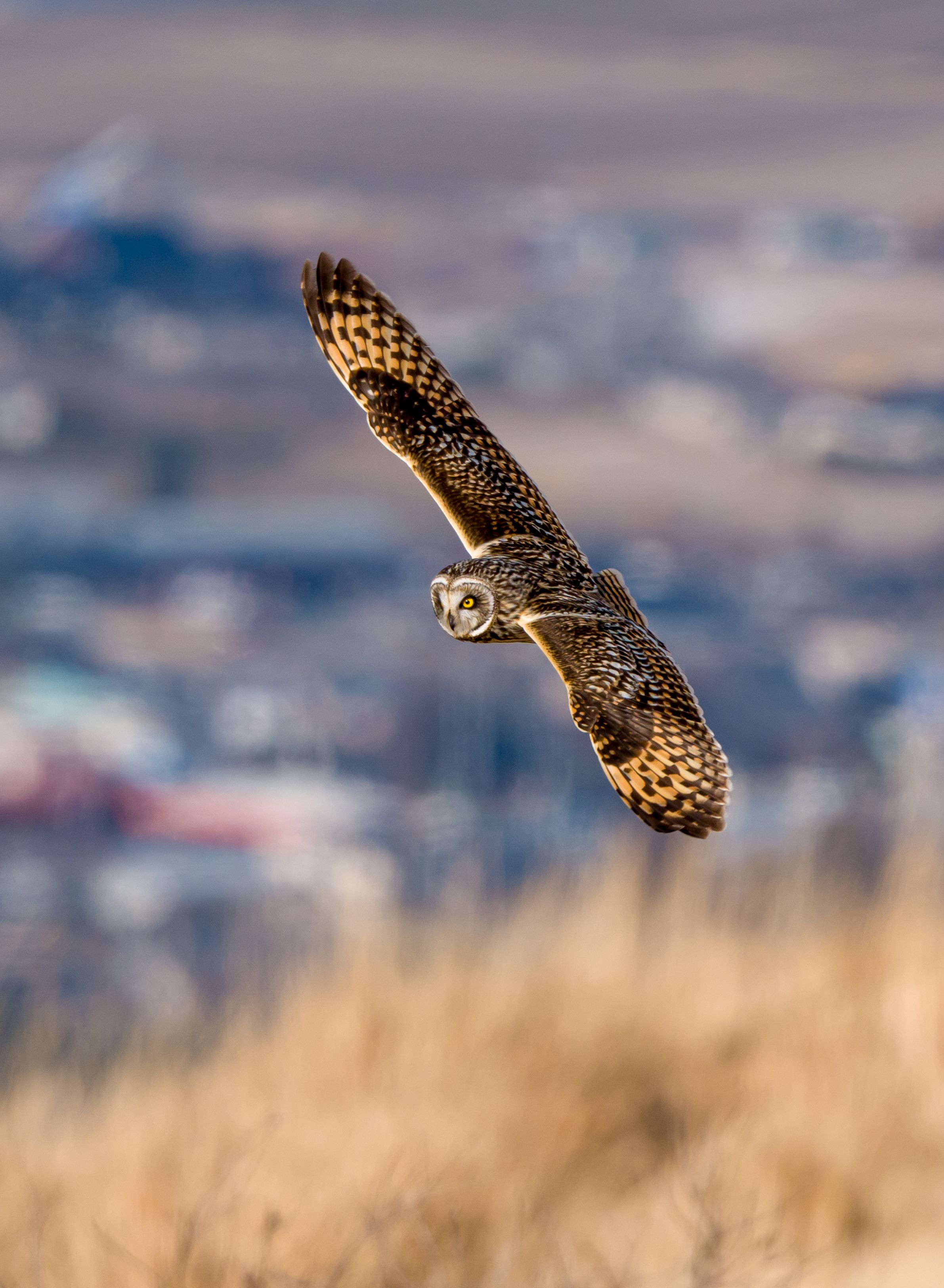 鋭い眼光、コミミズク