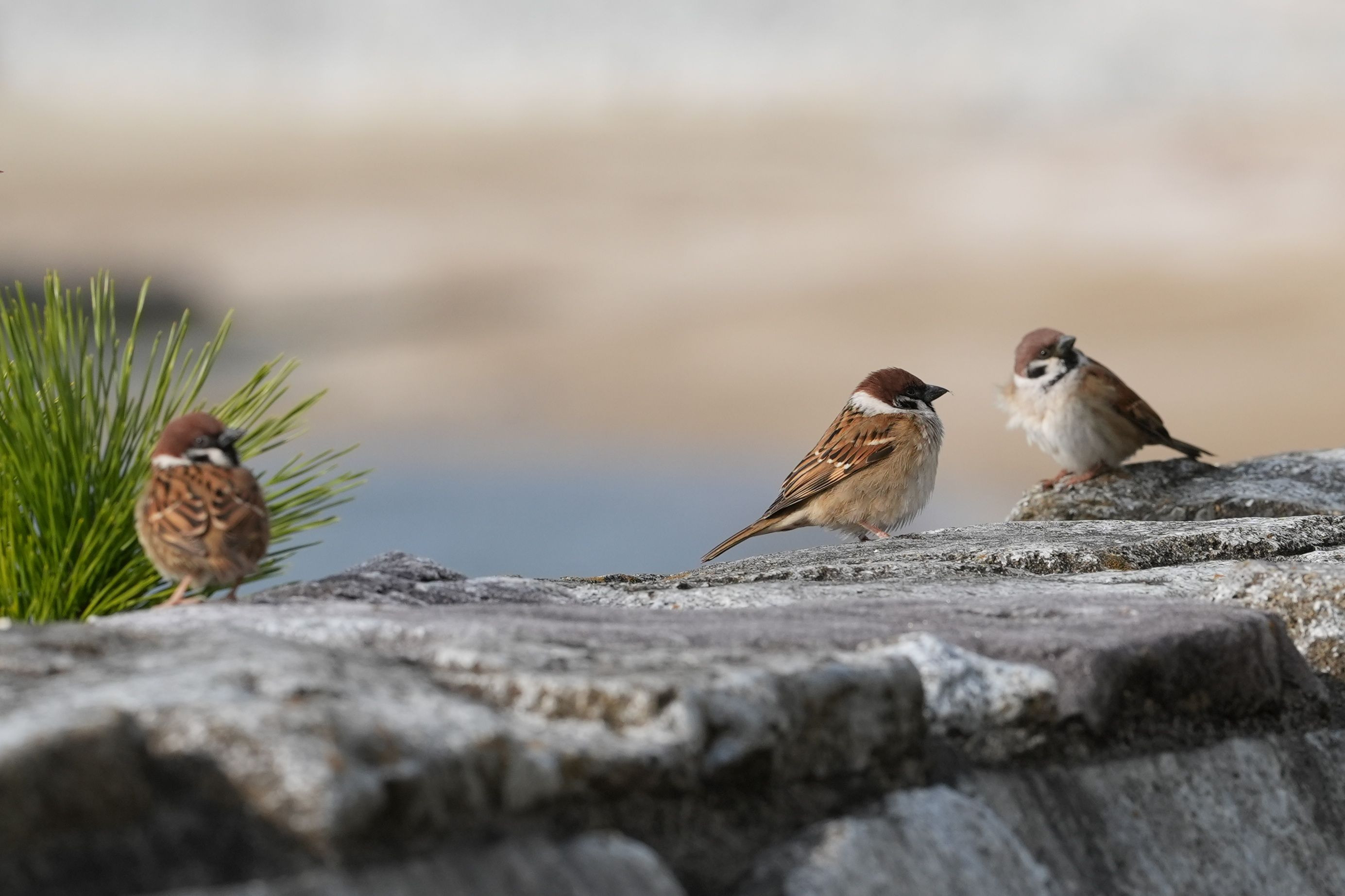 風は冷たいが、ここには日差しがある。そんな中でゆったりと群れているのがスズメたち。シャッターを押す指は冷え切っているが心は温かくなる。 #スズメ#