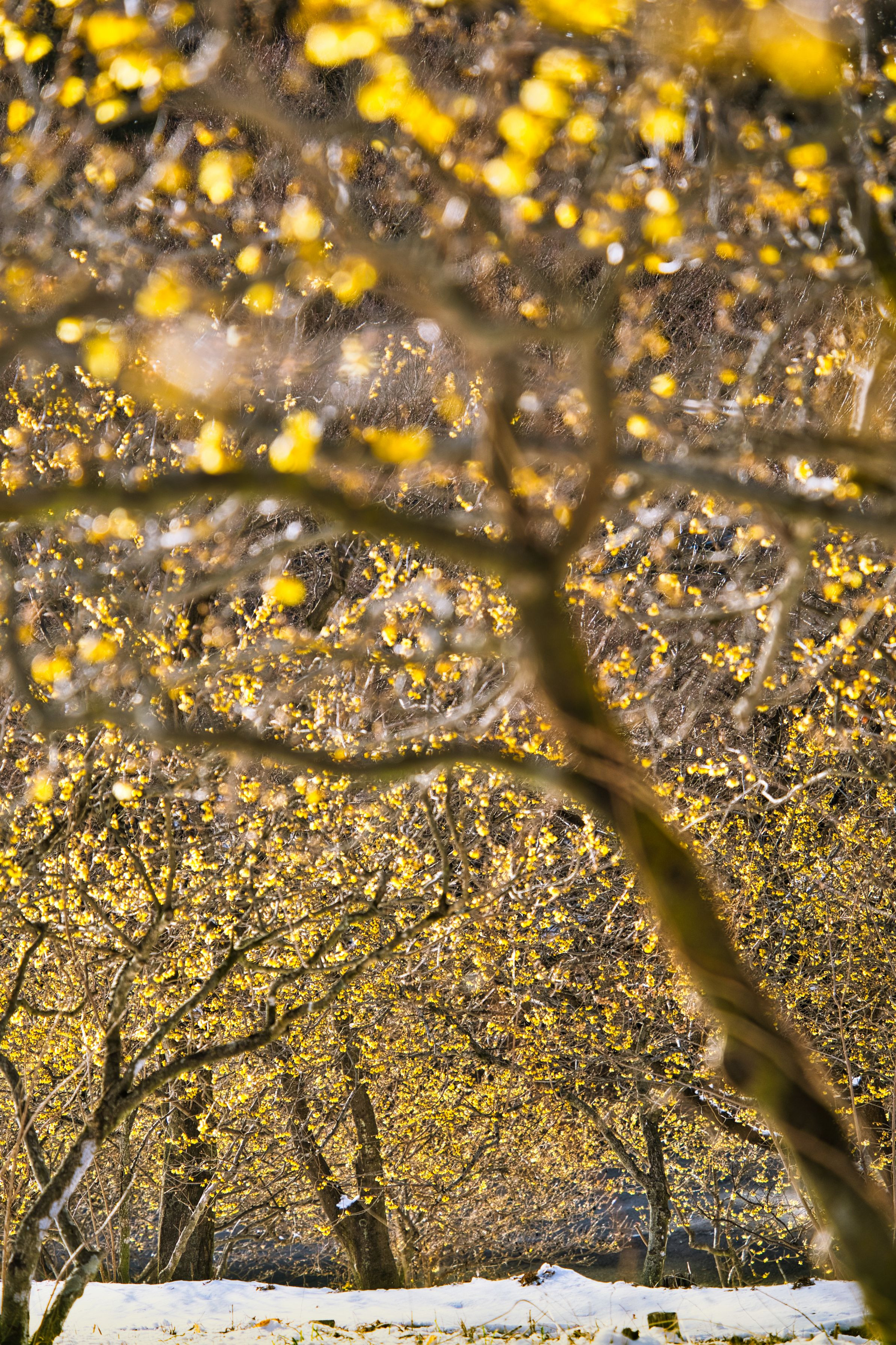 雪の降った翌日、蝋梅が満開に咲いていました。