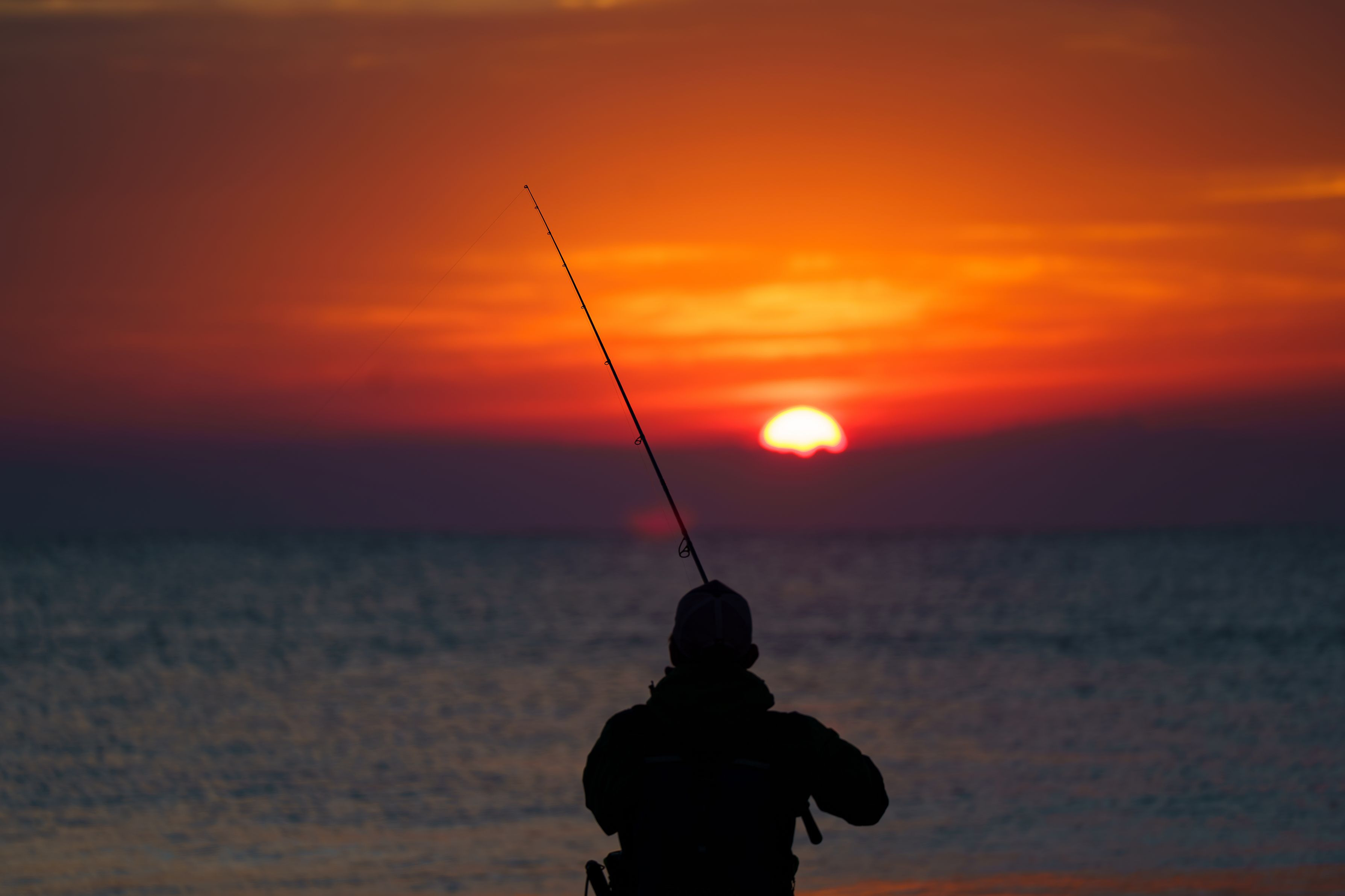 この時期だけ釣り人が現れる。静かな日の出の中静かに釣りをする人。