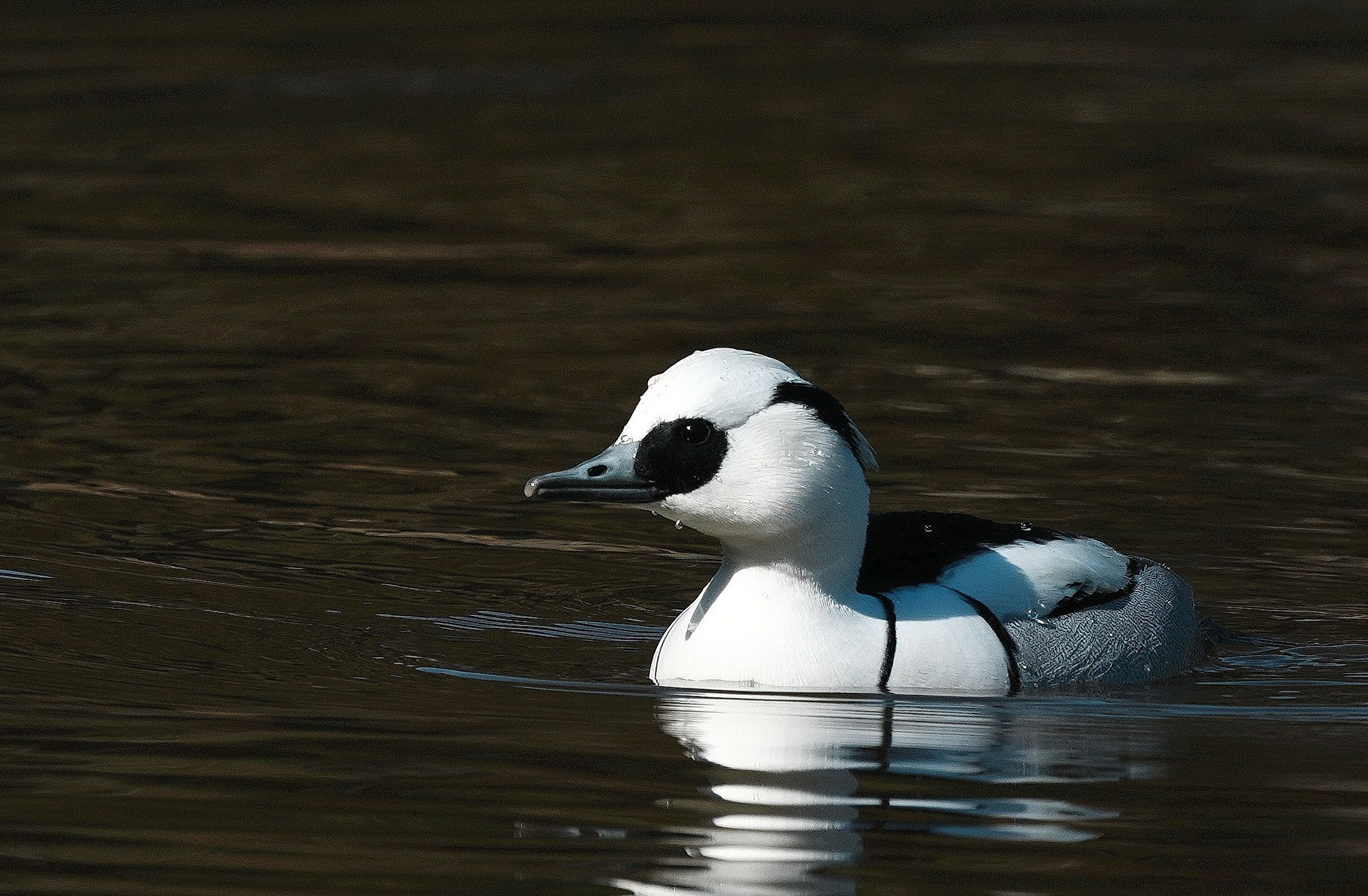 いつもの散策コースにミコアイサが入って来ました。♂3羽♀1羽です。