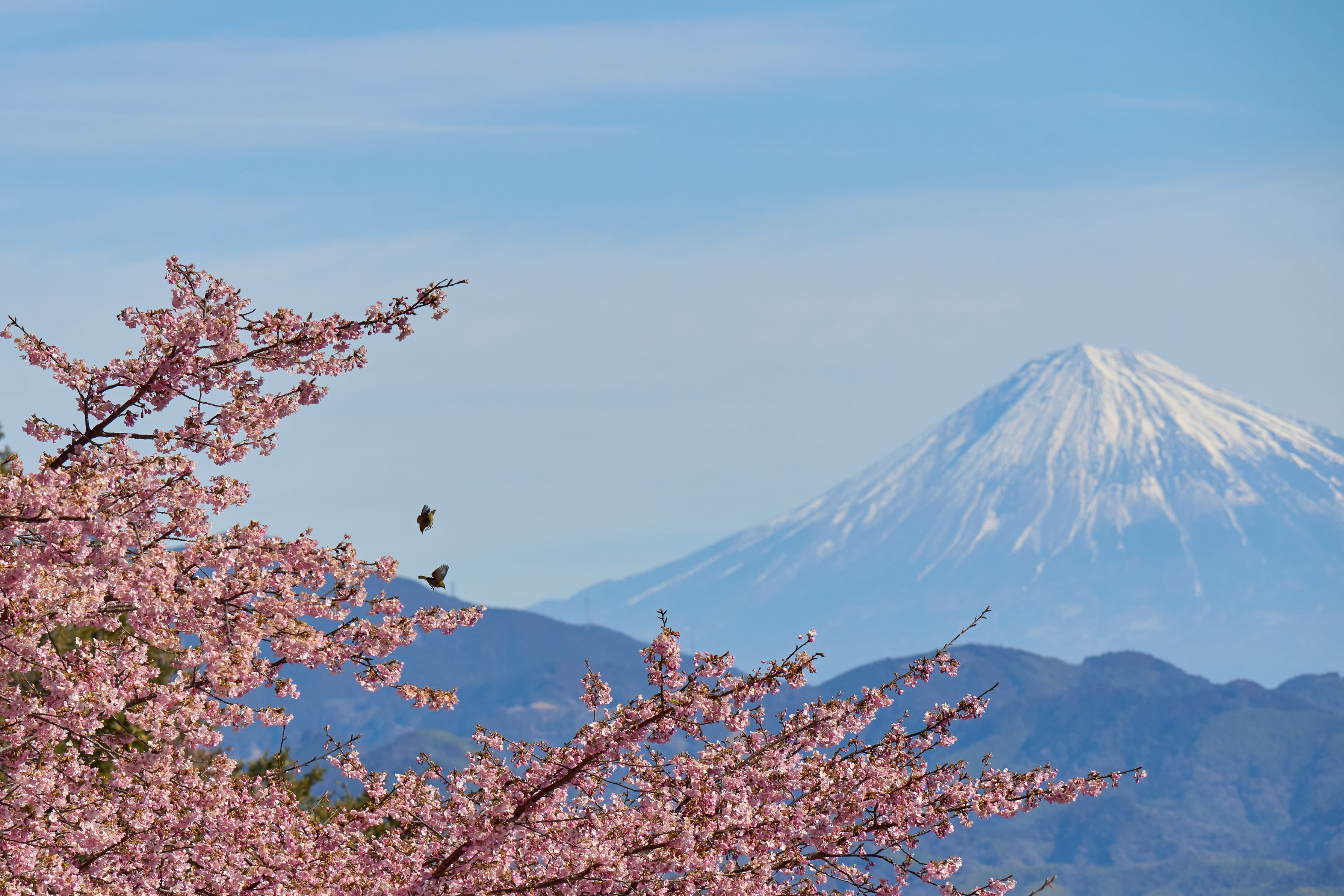 ぽかぽか陽気の中メジロが桜の周りで追いかけっこ。 ここは夏に花火撮影に来ていまして桜が咲くことを昨日知りました・・・^^; インスタなどで出回っている場所ですのでもはや周回遅れです。 ※RAW現像 少々トリミング