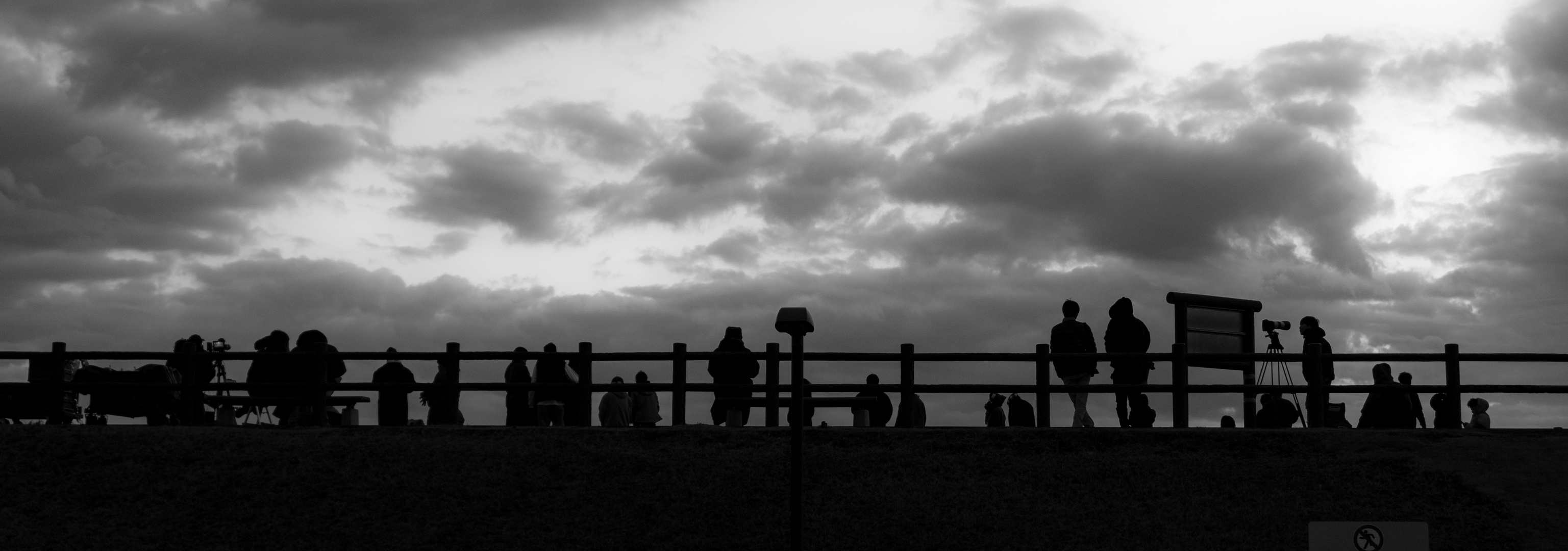 夜明け前、日の出まちの公園。空と人影だけが語る、静寂の一瞬。
