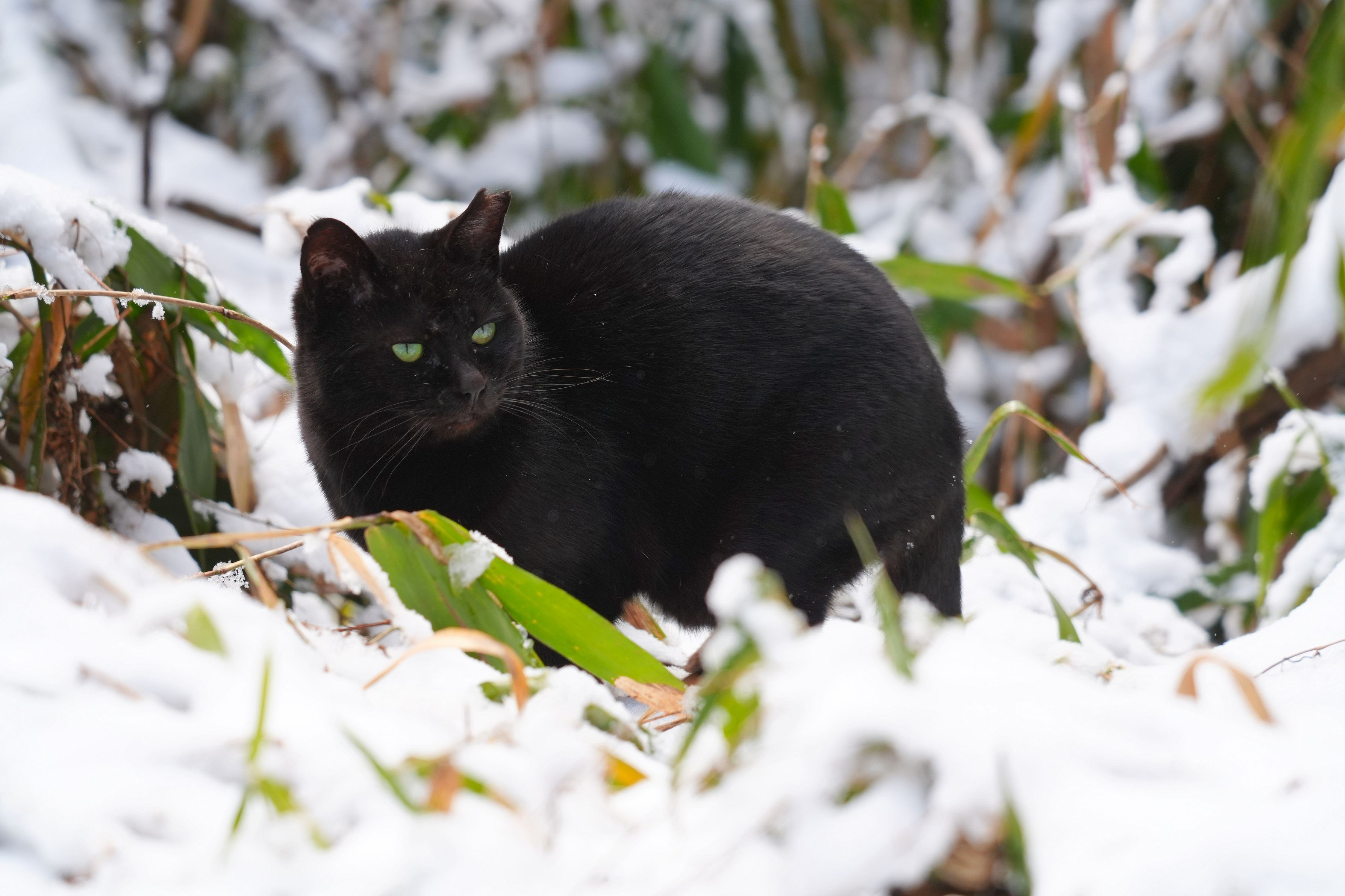 雪の日も元気に暮らす公園猫