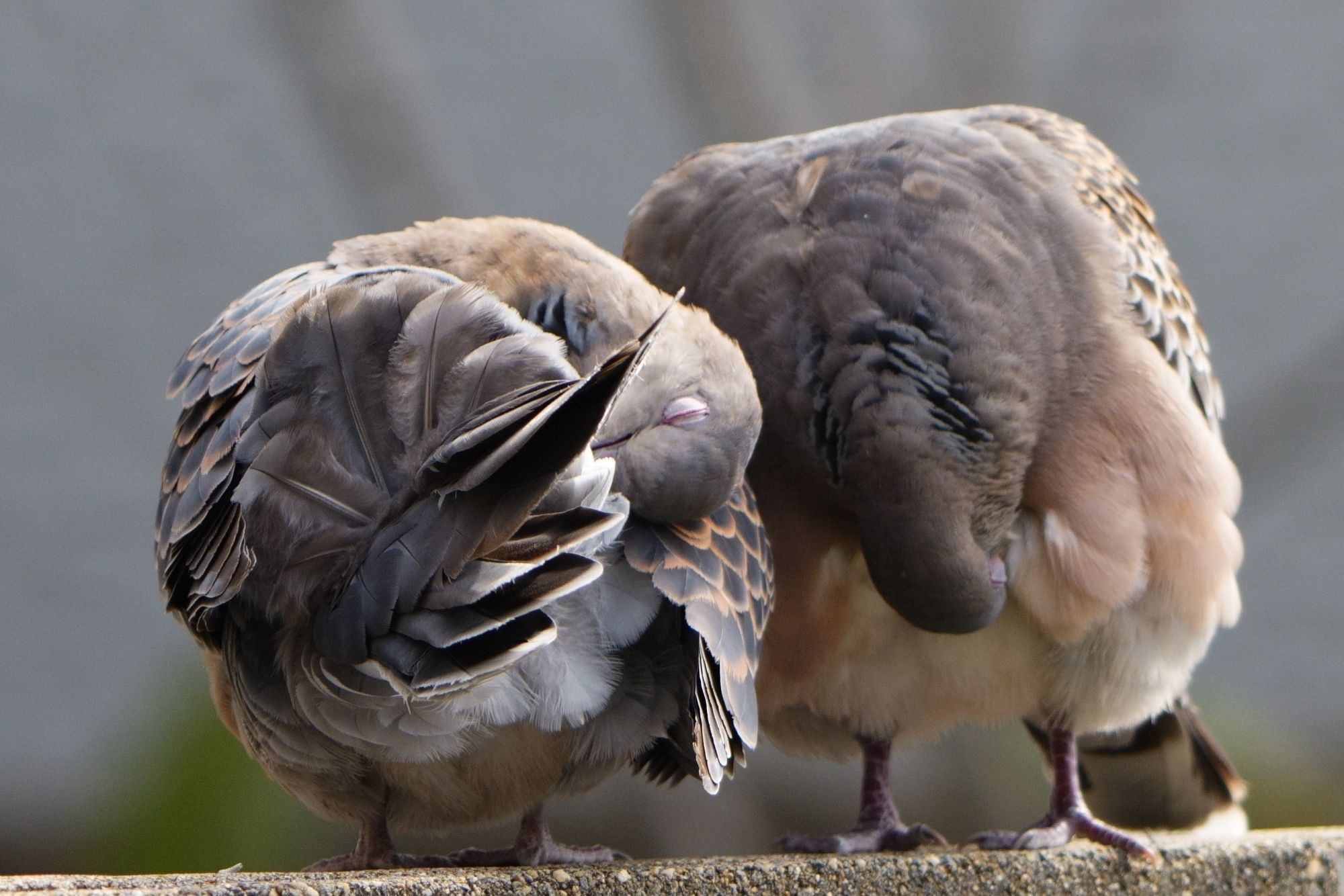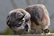 庭に遊びに来るキジバト 毛作りをしています。