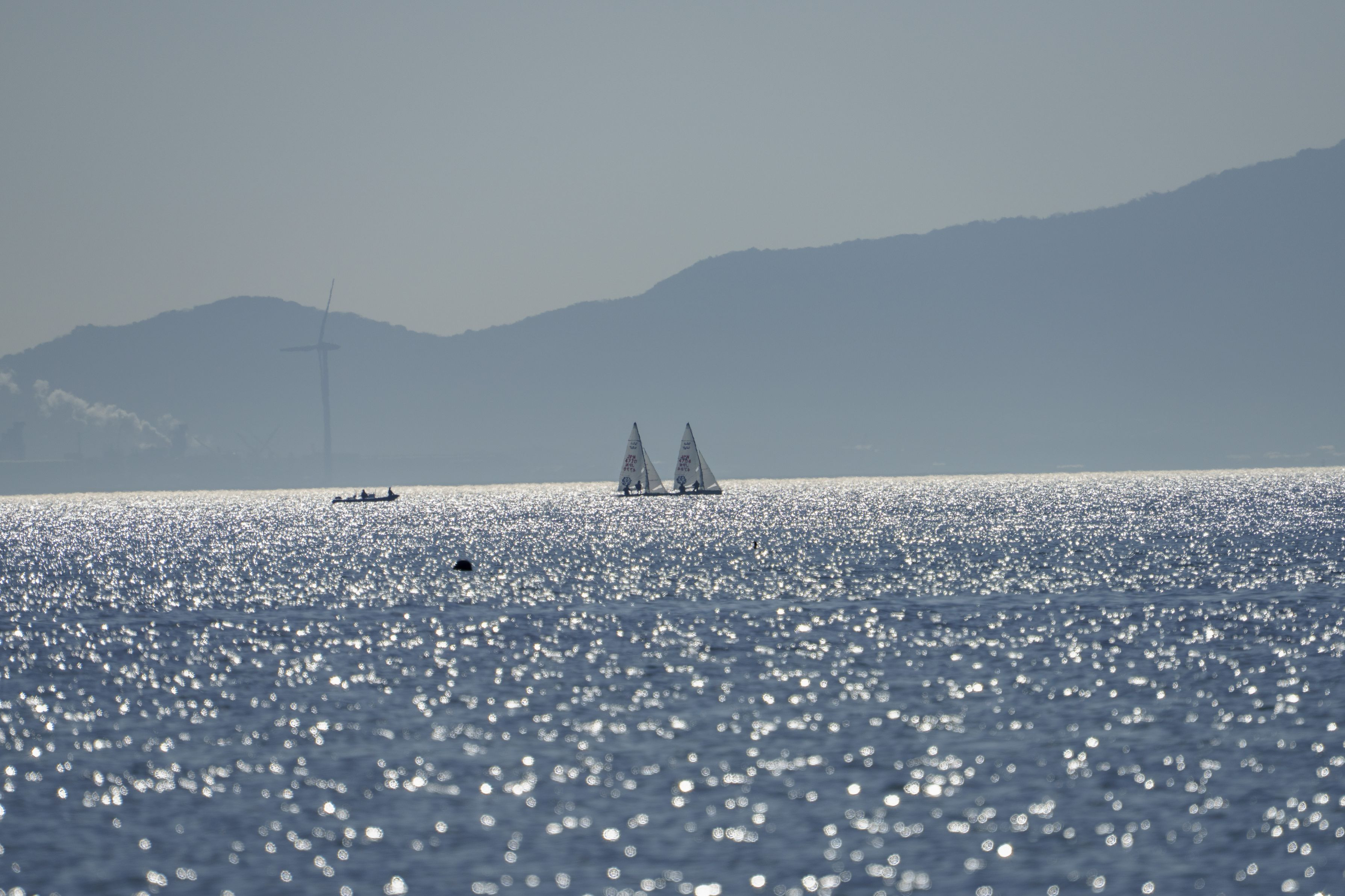キラキラと輝く伊勢湾に浮かぶヨットを望遠で捉えてみました。