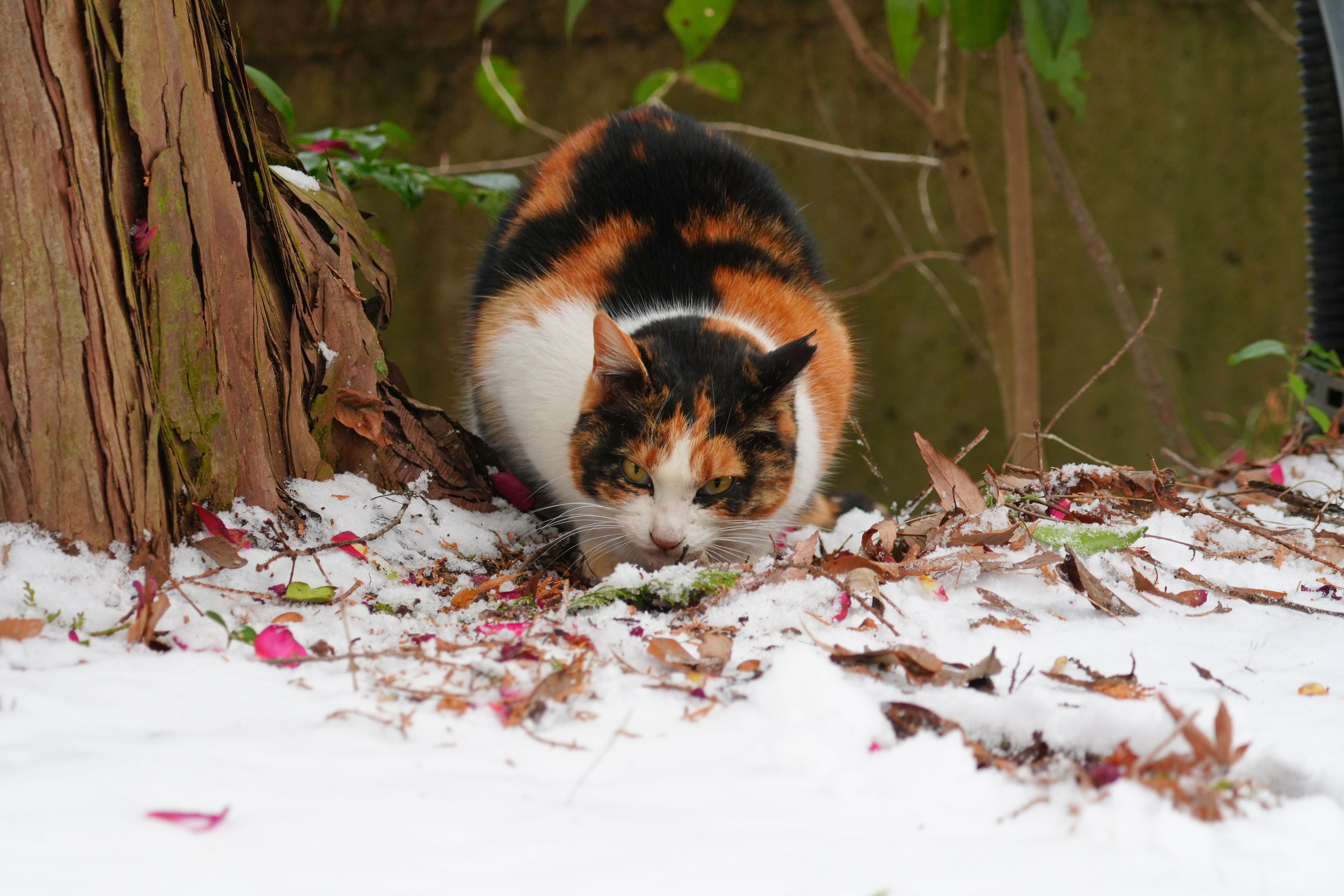 雪の日の公園猫