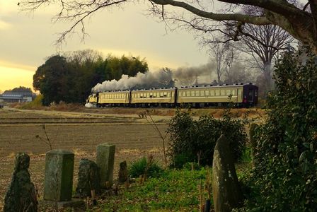 「冬枯れの 去り行く汽車を 野仏と」 2024/12/21 真岡鐡道