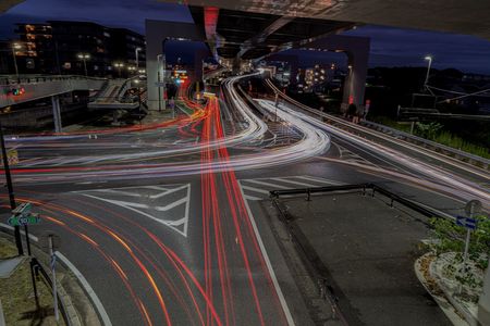 夜桜・河津桜と灘浜大橋